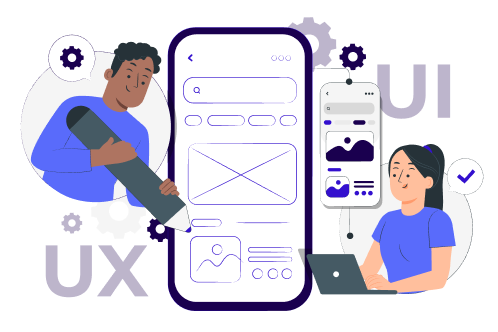 يعمل الفريق الإبداعي على بناء محتوى الموقع من خلال كتابة الجمل الرئيسية والأوصاف اللازمة والبنرات الإعلانية وتصميم صور الواجهات والأقسام.